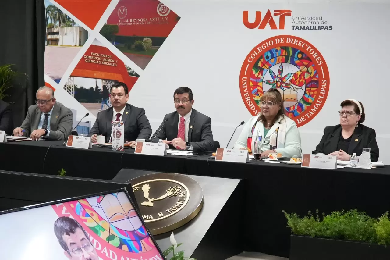 El rector Dámaso Anaya Alvarado presidió la onceava Reunión del Colegio de Directores de la Universidad Autónoma de Tamaulipas (UAT), donde se presentó el proyecto que busca ampliar la cobertura educativa mediante la oferta de carreras y programas de bachillerato en la modalidad virtual.